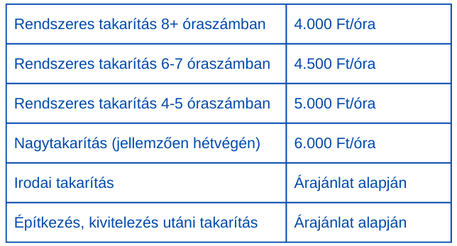 Otthonát vagy irodáját a takarítás után olyan rendezettnek és makulátlanul tisztának találja majd, mintha senki sem használná. Bízza ránk a takarítást, tegyen próbára minket – és tapasztalja meg, miért nyújtjuk az egyik legjobb ár-érték arányú szolgáltatást a piacon.