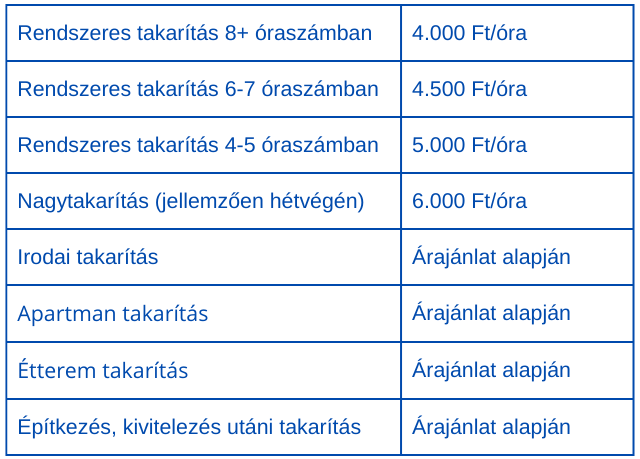 A megrendelő előre meghatározott óraszámot foglal, a takarítás ezen időkereten belül történik.